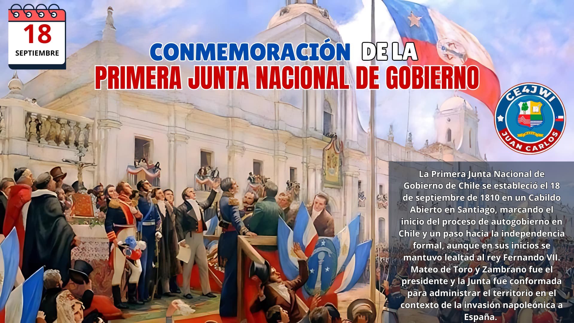 el 18 de septiembre se conmemora la realización de la Primera Junta Nacional de Gobierno, realizada el 18 de septiembre de 1810. Esta instancia se realizó debido a que el Rey Fernando VII de España, había sido capturado por Napoleón en 1808 y en un primer momento, buscaba mantener lealtad al rey mientras estaba cautivo.