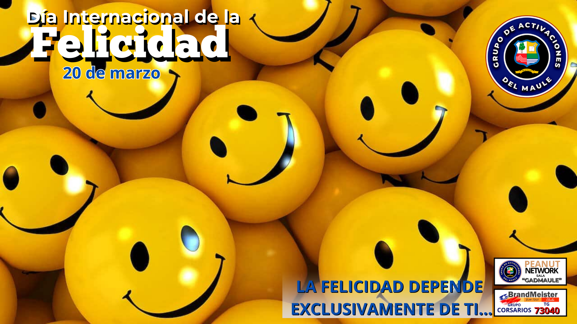 Día Internacional de la Felicidad es una jornada que se celebra anualmente el 20 de marzo desde 2013, establecida por la Asamblea de las Naciones Unidas (ONU) el 28 de junio de 2012.Inspirada por la filosofía de Bután, que desde la década de 1970 prioriza la Felicidad Nacional Bruta sobre el Producto Interno Bruto, la Asamblea General de las Naciones Unidas, a instancias del asesor de la ONU Jayme Illien, adoptó la resolución 66/281 en 2012.2 Esta resolución proclamó el 20 de marzo como el Día Internacional de la Felicidad, con el objetivo de reconocer la búsqueda de la felicidad y el bienestar como aspiraciones universales en la vida de los seres humanos y enfatizar la importancia de su inclusión en las políticas de gobierno. Subraya la necesidad de un enfoque más inclusivo, equitativo y equilibrado del crecimiento económico que promueva el desarrollo sostenible, la erradicación de la pobreza, y el bienestar y la felicidad de todos los pueblos.