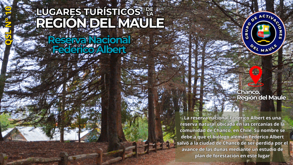 Grupo De Actividades Del Maule invita a recorrer nuestra hermosa Región del Maule, conocer nuestros lugares turísticos de la Región del Maule y todos los días sábado estaremos entregando nuestras QSL alusiva de cada lugar destinado para cada referencia.